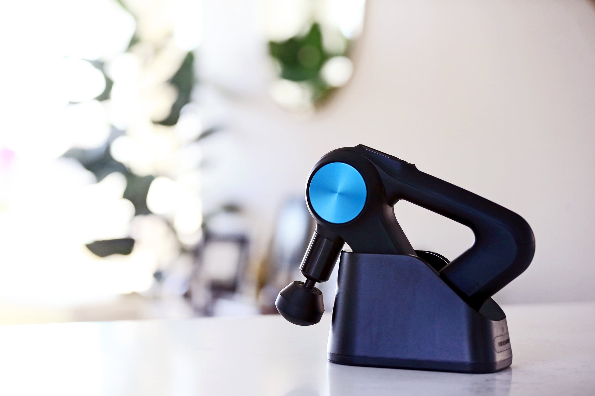- 3. Umístěte zařízení Theragun PRO do kolébky bezdrátového nabíjecího stojanu a zatlačte jej dopředu, dokud nebude zcela zasunuto.